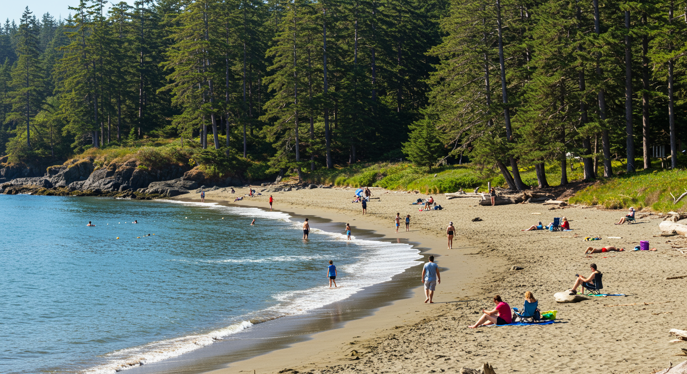 Pipers Lagoon Park, Nanaimo: Pipers Lagoon Park is an idyllic choice for a blend of rugged coastal beauty and calm waters. This hidden gem features a sandy beach surrounded by rocky shores, tide pools, and scenic trails. Relax under the shade of trees, explore the fascinating marine life in the tidal pools, or hike along the coast for stunning views of the Salish Sea.